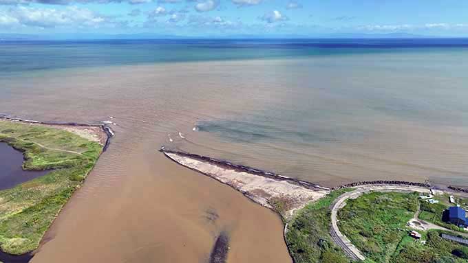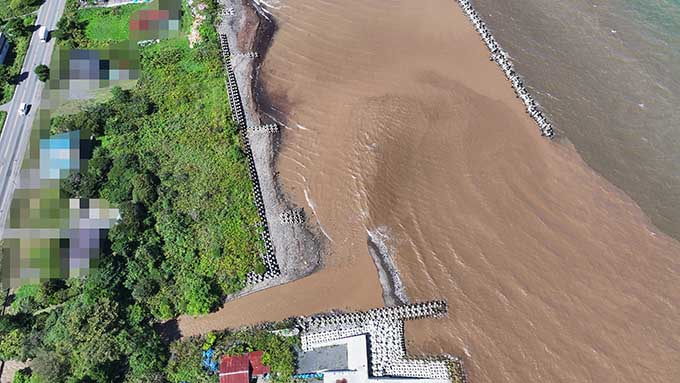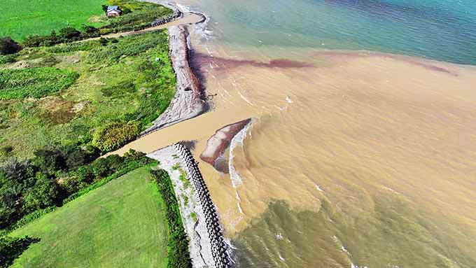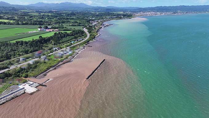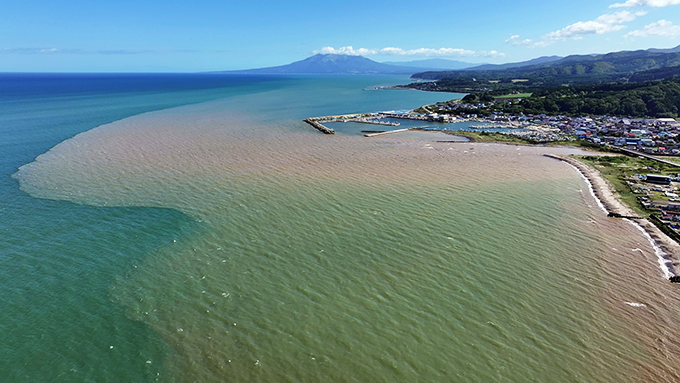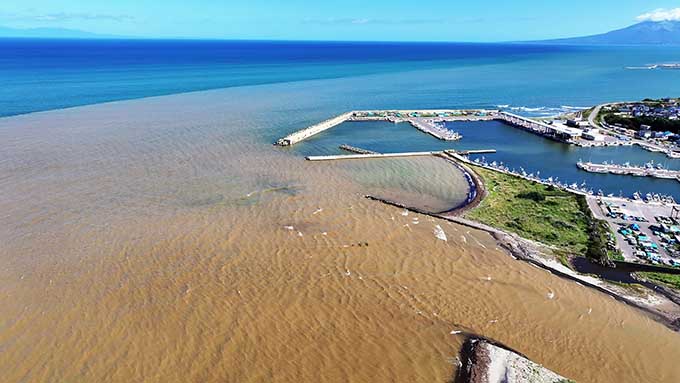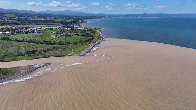 たいした増水でもないのに、川から酷い泥水が流れ、河口から海へと広がっていた。